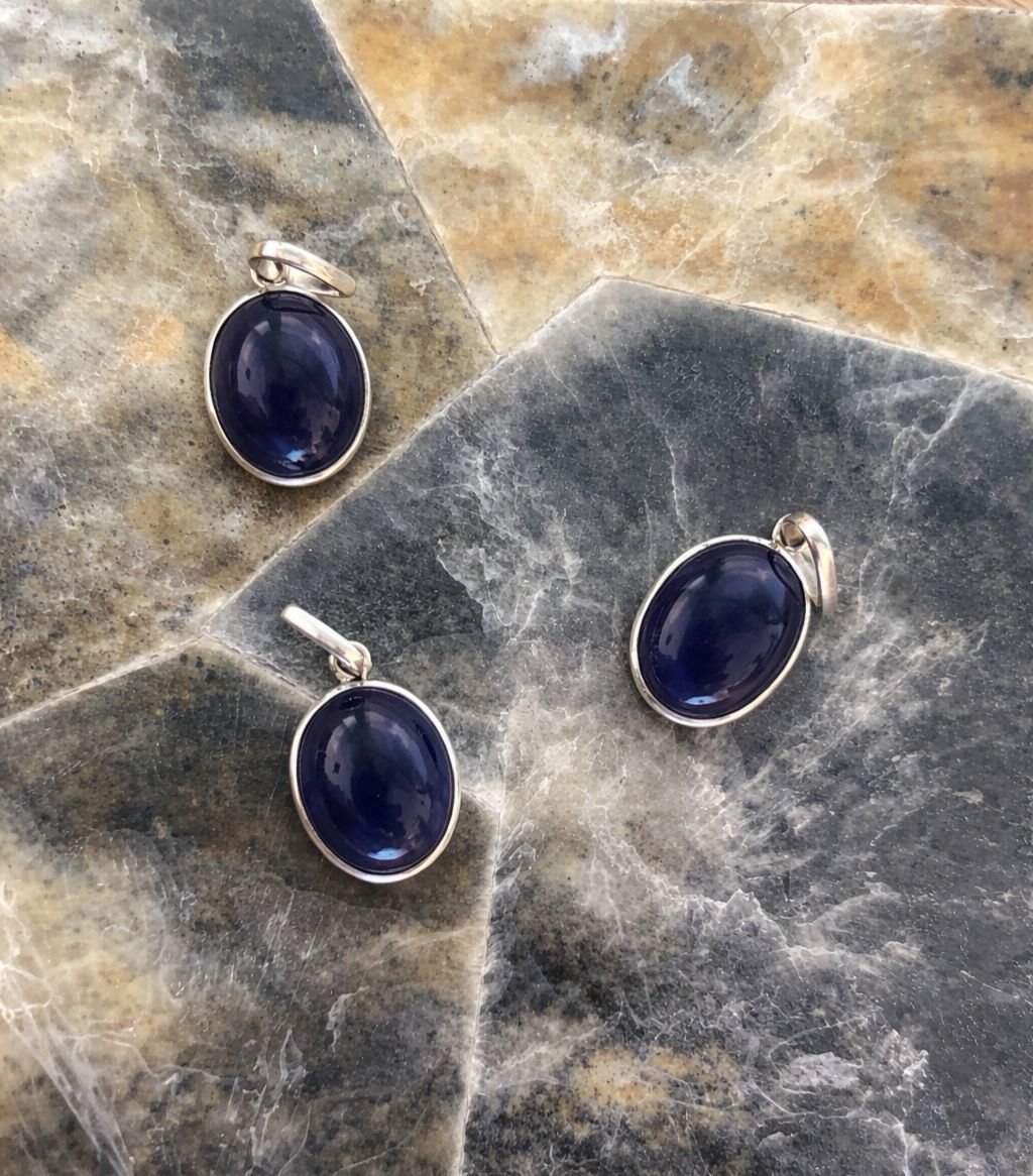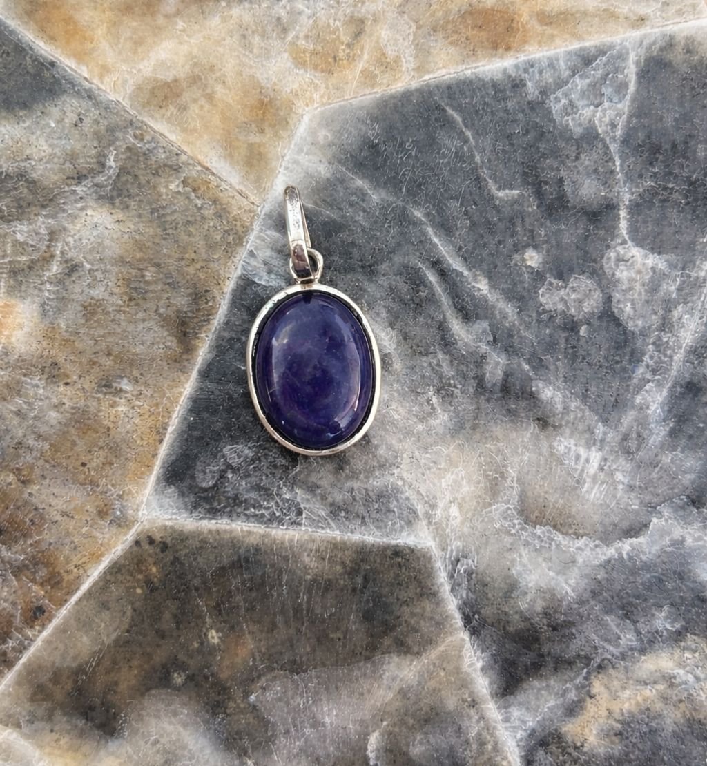 - Genuine Iolite pendant with deep blue-violet hues that shift beautifully under light, offering a refined and premium look.